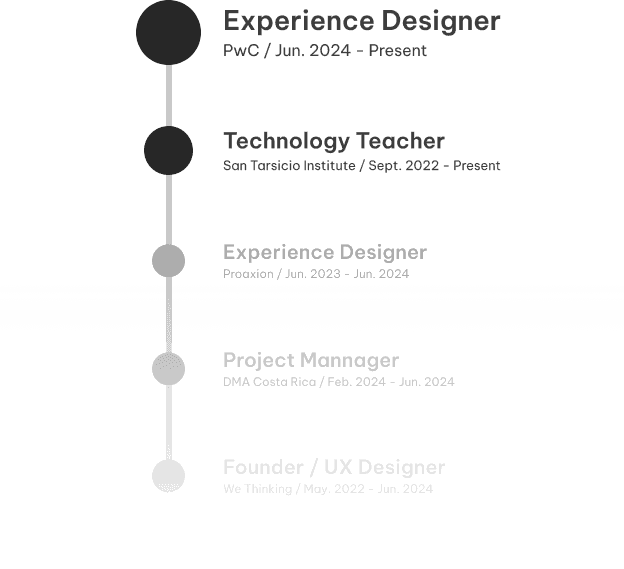 I'm interested in ambitious UX Design projects. I also have a pedagogical side. In the past I taught as an academic assistant in the subject Image and Sound Design III (UX) at UP and nowadays I teach Graphic Design and multimedia at the San Tarsicio Institute.